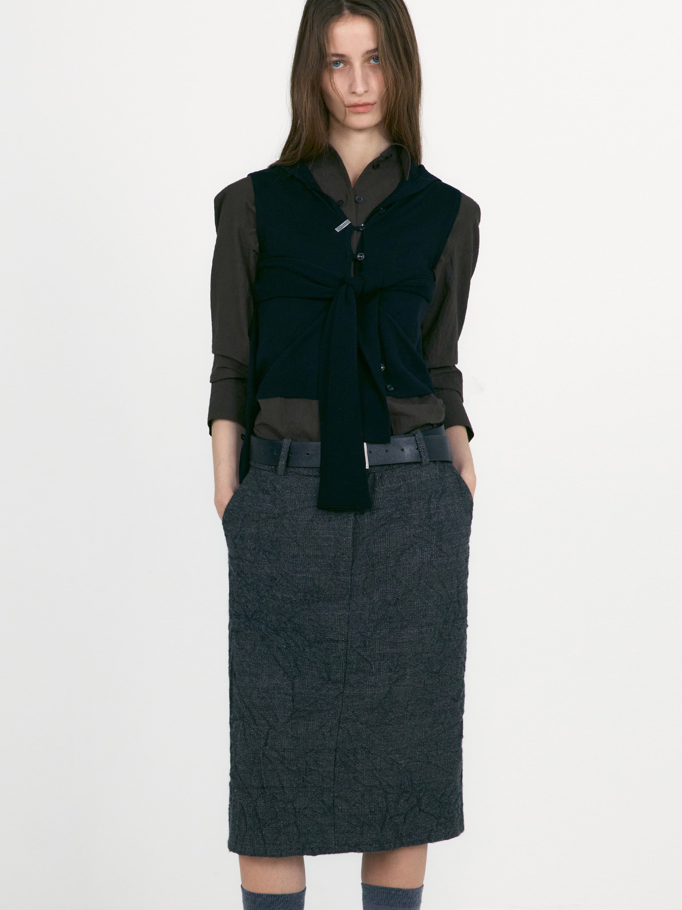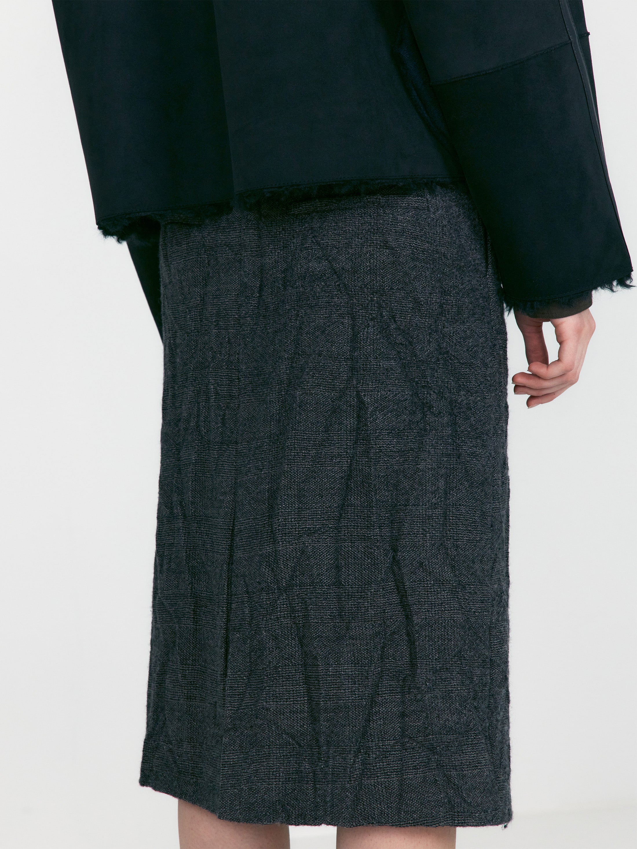 Crumpled Wool H-Line Skirts - Tweed Check Grey
