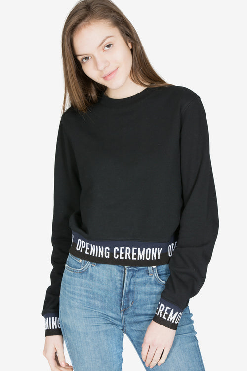 ELASTIC LOGO CROP SWEATSHIRT - BLACK