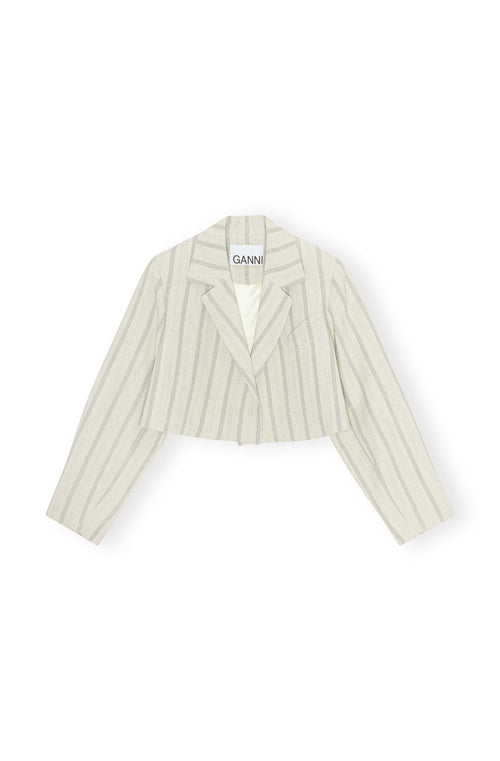 GANNI Drapey Stripe Suiting Cropped Blazer- Phantom Stripe