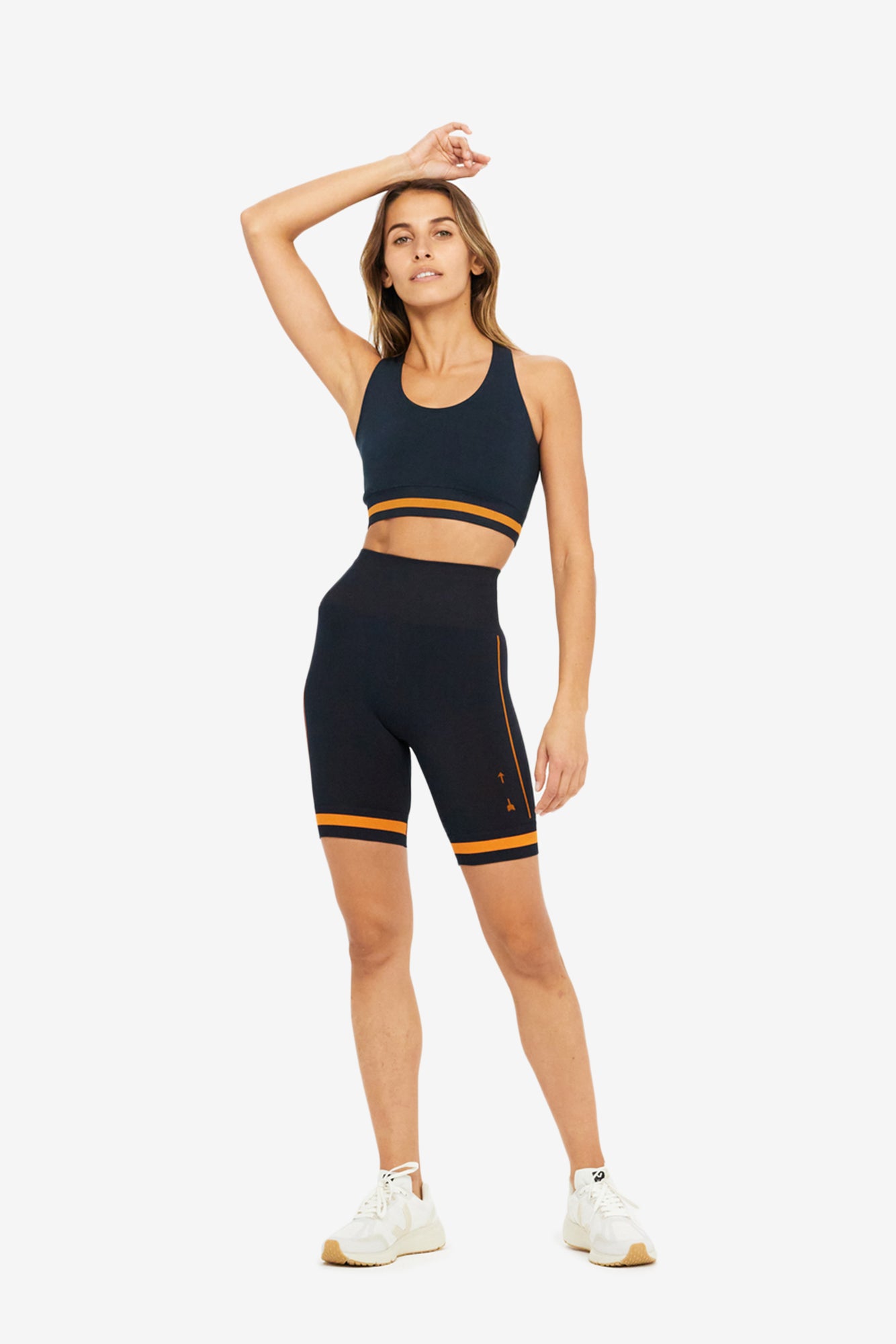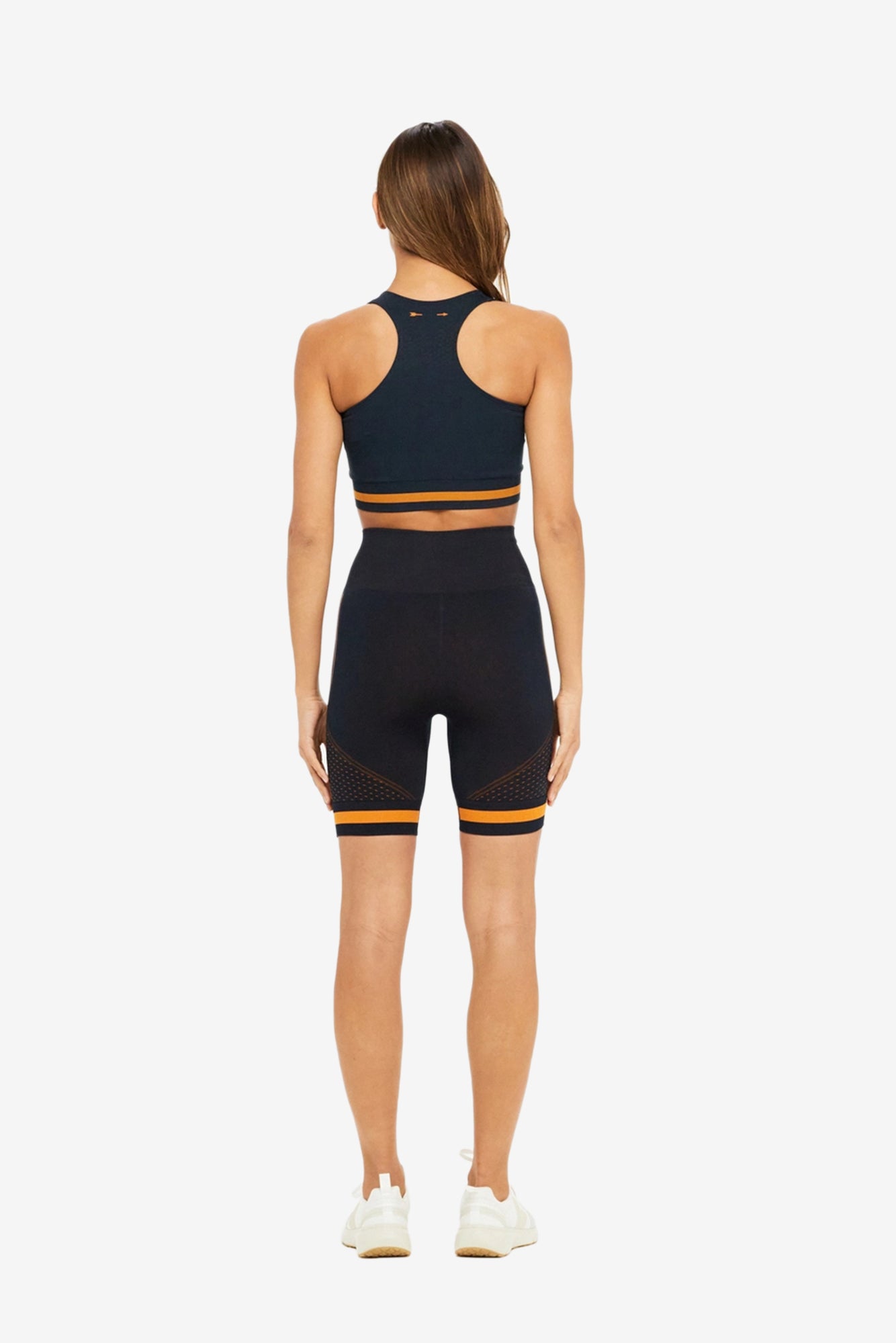 來自澳洲的 The Upside 以充滿熱情色彩與圖紋打造了這個運動生活品牌。這款Seamless Spin Short緊身舒適,布料和接縫設計帶來親膚裸感,貼身好活動!緊身短褲的海軍藍底色與側邊橘色品牌經典箭頭logo成對比,可與具相同色彩的Gigi Crop Tee搭配成套。