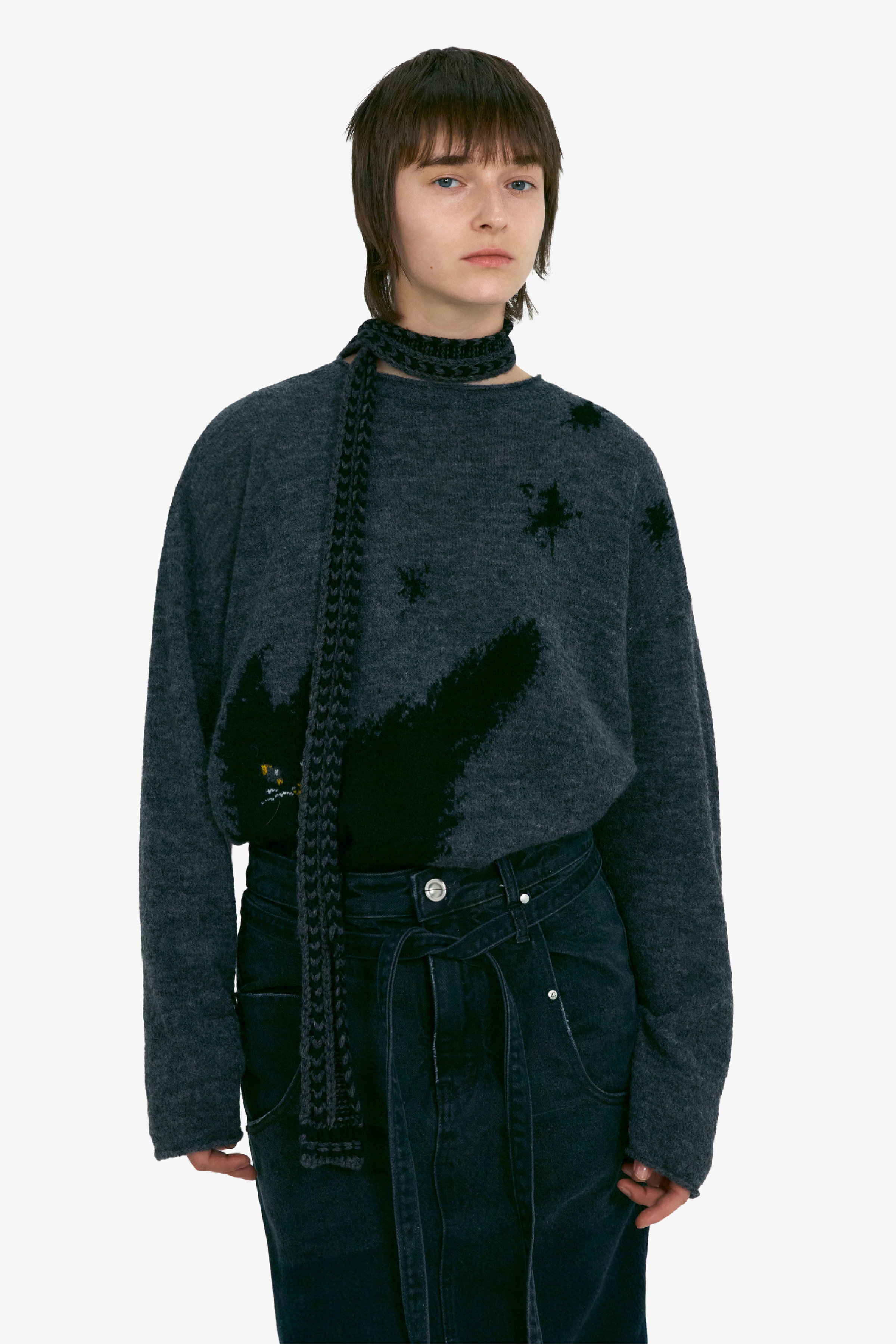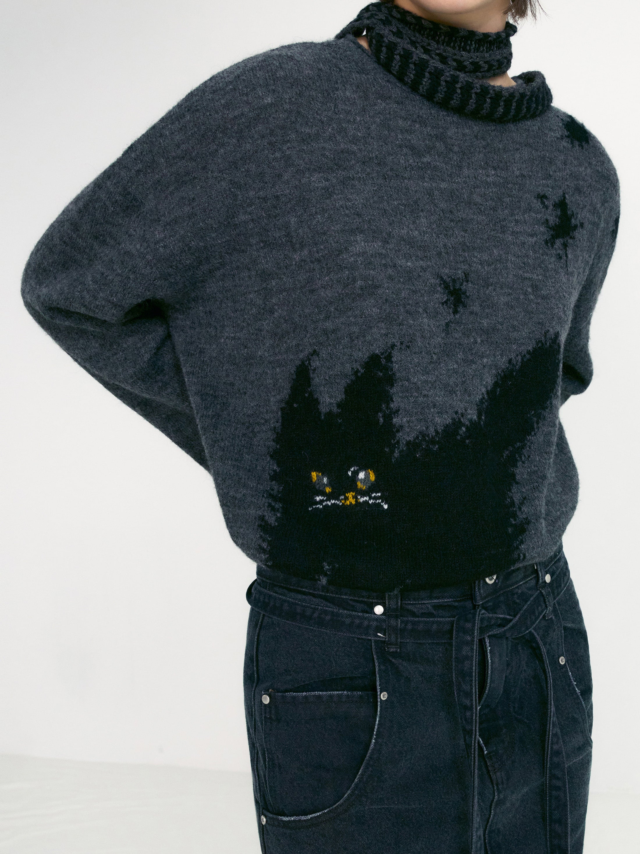 [UOU___CUTE x LOW CLASSIC] Dandelion Cat Knit - Charcoal
