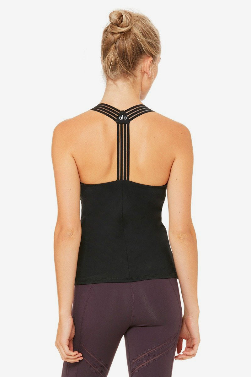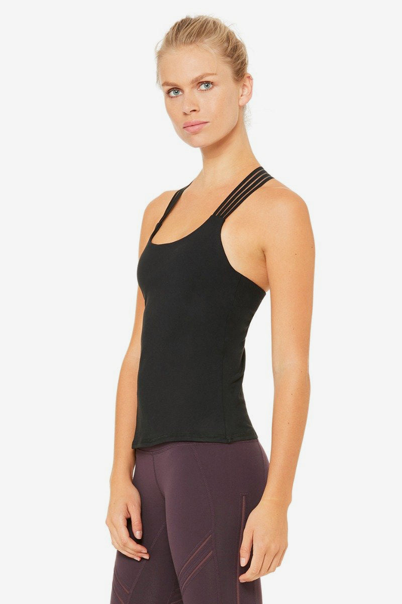 Alo Yoga 的 Escape Bra Tank 運動上衣附活動式胸墊,只要一件就能進瑜伽教室了!四面彈性面料能完美貼合身型,並隨身體律動。肩帶及背後的線條更是能展現美背的吸睛設計,簡約而不失時尚感