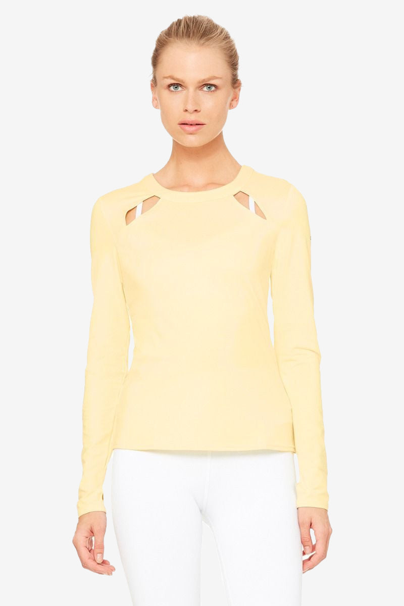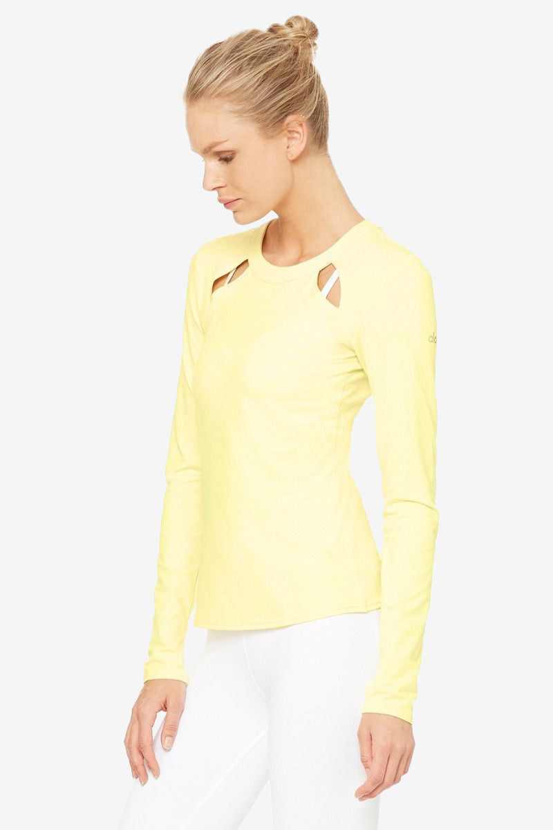 Alo Yoga的Mantra Long Sleeve長袖運動衫完美結合了時尚與機能。剪裁完美的線條與方便的拇指開口讓你能在運動時不受干擾,全心享受運動過程。簍空設計則能展現時尚品味。同款另有黑色。