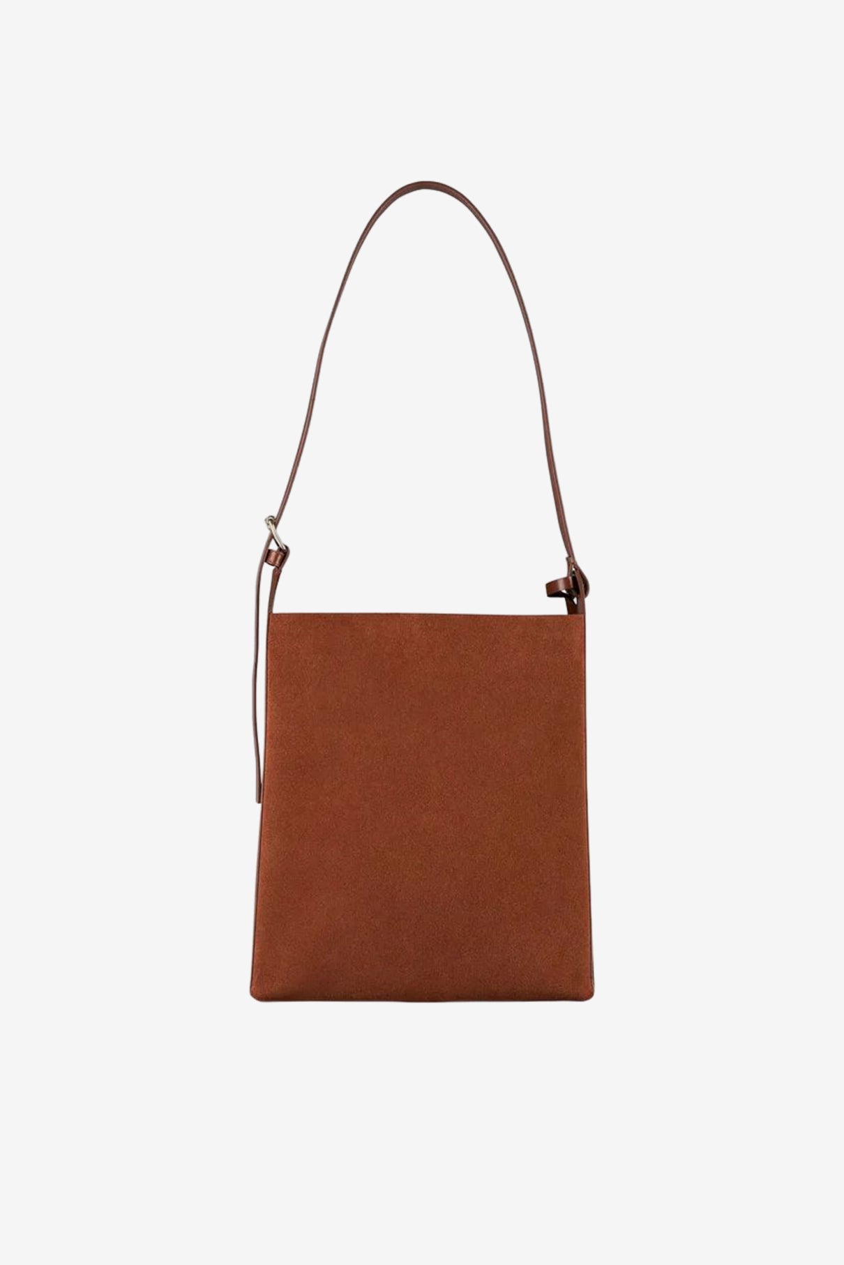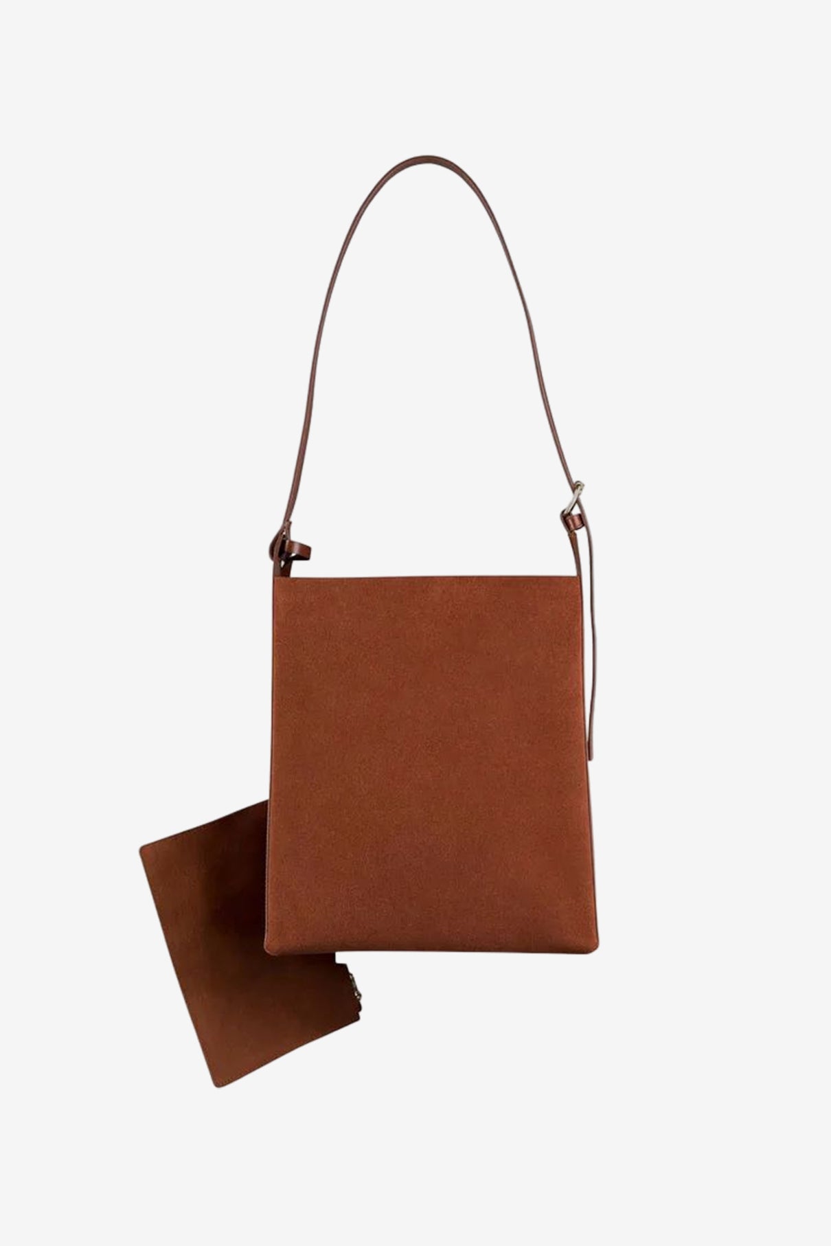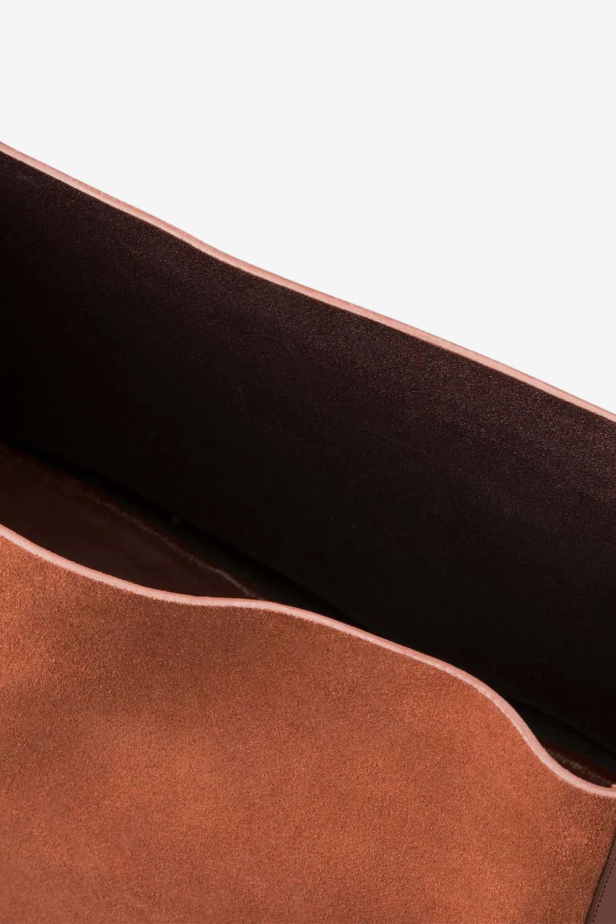 Virginie Bag 方正的梯形輪廓滿載法式美學,運用雙材質光滑皮革與麂皮面料更升質感。包款可肩背也可手提,簡約的設計搭配輕鬆收納的容量,不管是正式場合或是假日出遊都百搭實用。