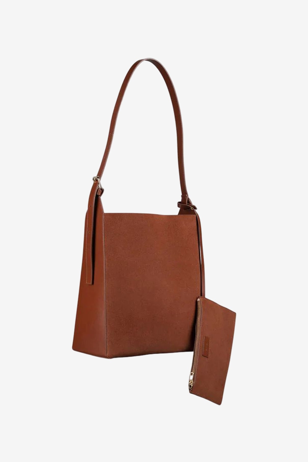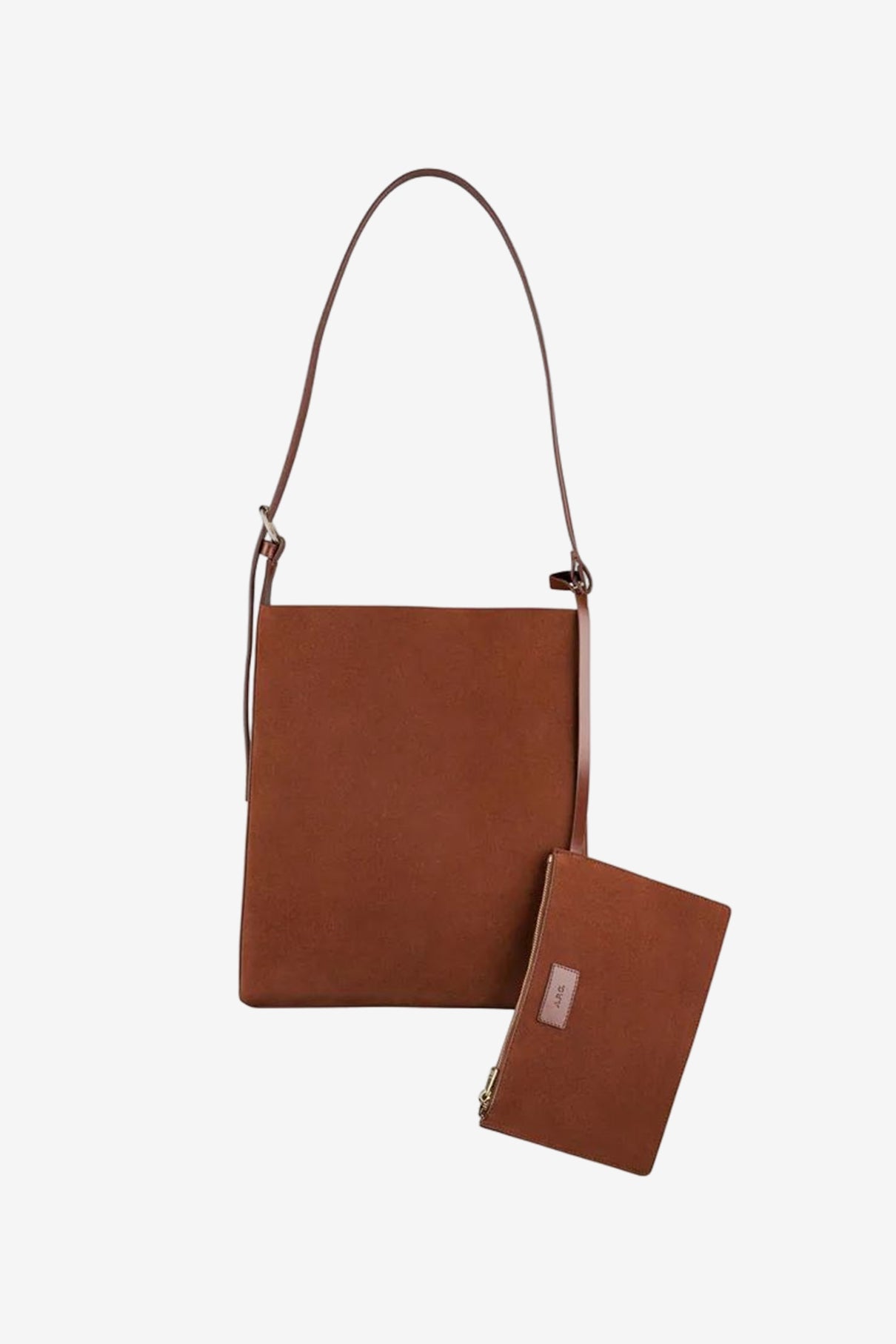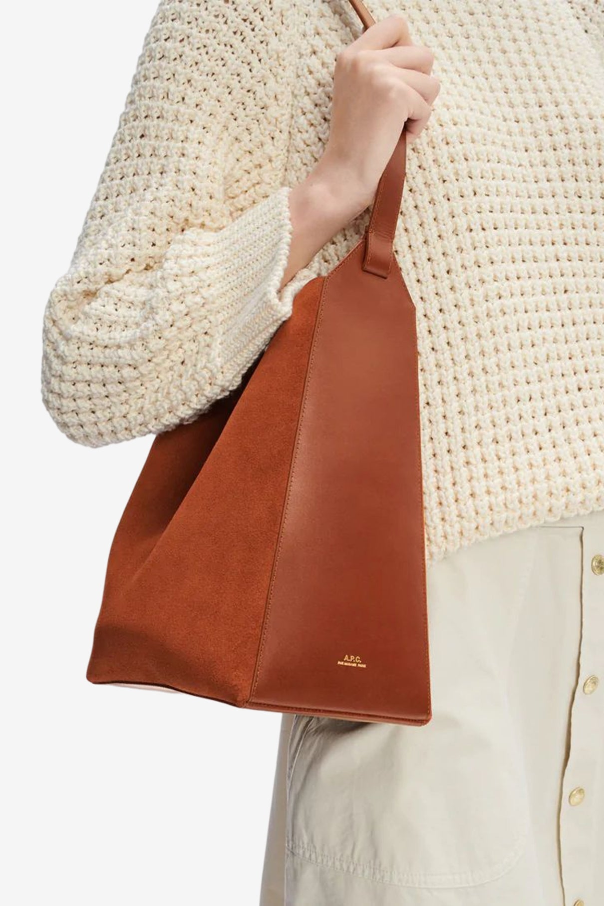 Virginie Bag 方正的梯形輪廓滿載法式美學,運用雙材質光滑皮革與麂皮面料更升質感。包款可肩背也可手提,簡約的設計搭配輕鬆收納的容量,不管是正式場合或是假日出遊都百搭實用。