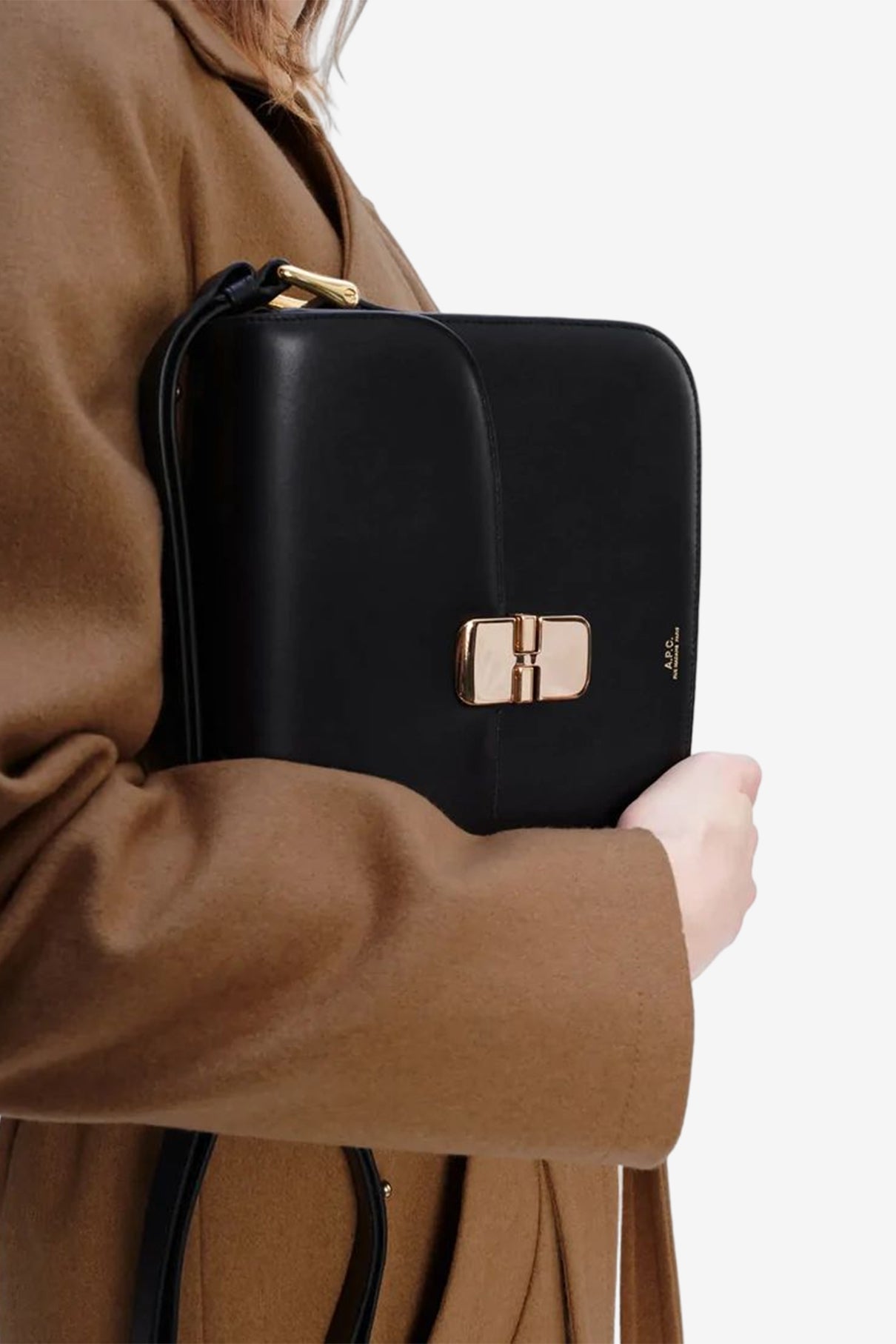 A.P.C. 經典的小型Grace包,是歐美時尚人士的IT Bag,簡潔的設計與高質感的牛皮,隨性搭配牛仔褲立刻展現出都會女性魅力。