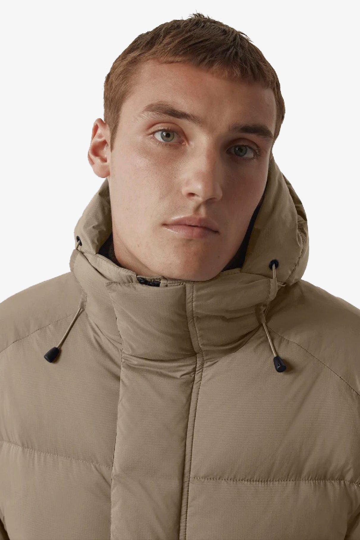 - 羽絨兜帽可雙向調節,增加保暖性和防風雨保護