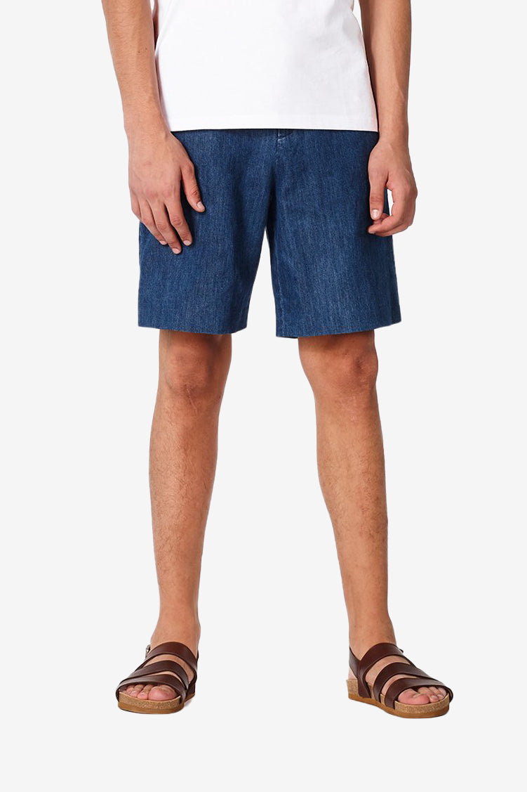 A.P.C. 以高質感的日常必備單品在時尚界成為低調而搶手的品牌。這件棉麻混紡牛仔短褲材質輕薄涼爽,褲頭有可調節棉質束帶,可依個人身型調整成最合適的尺寸。是炎熱夏日想要輕便涼快的絕佳款式。