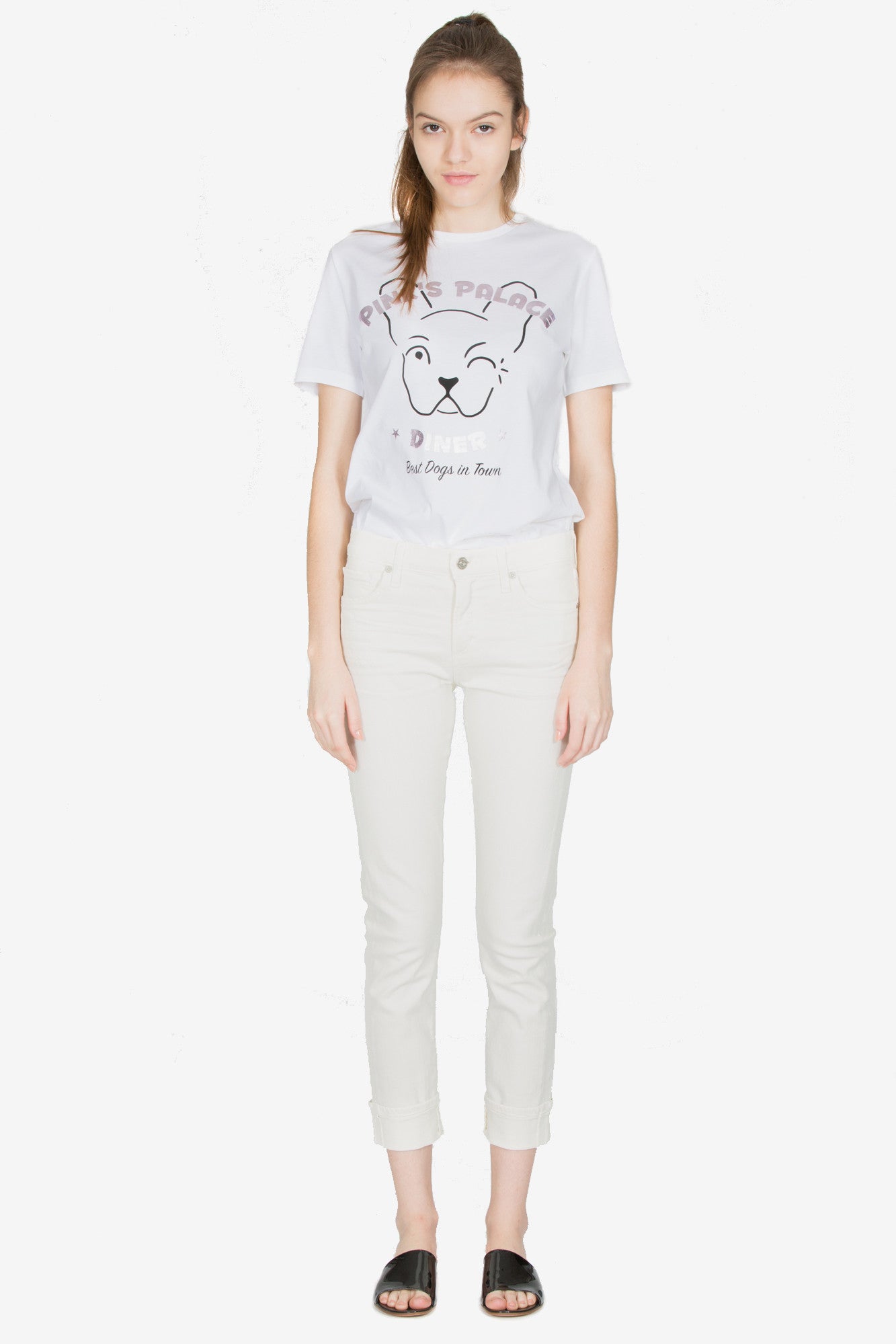 Citizens of Humanity 的這款JAZMIN窄管牛仔褲擁有超修身的合身版型和完美的九分長度,是不分季節的完美牛仔褲型!米白色則略帶仿舊感,這裏搭配的是 Etre Cecile 的PINK'S PALACE DINER T-SHIRT。同款另有水洗藍色