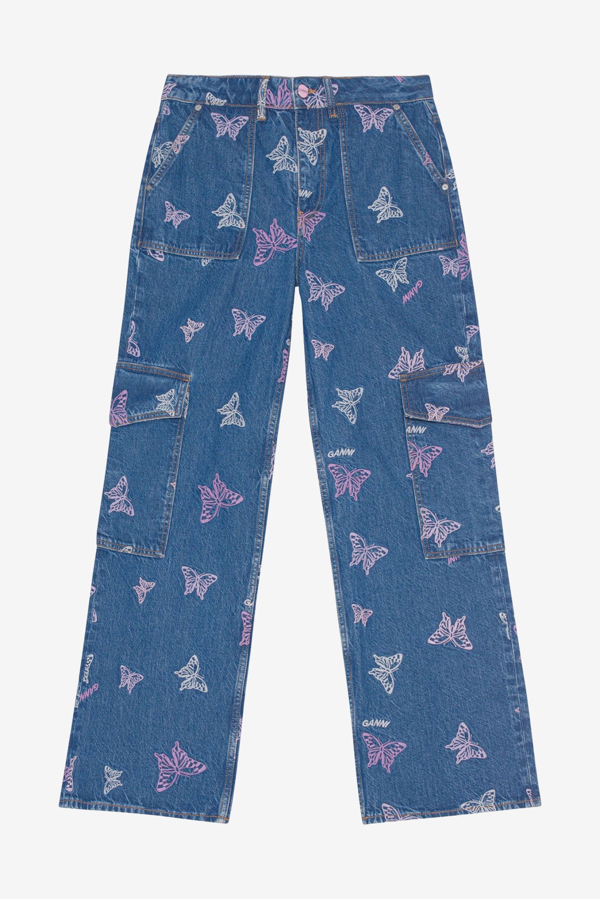 來自丹麥的 GANNI 以活潑趣味的服裝出名,新一季蝴蝶圖樣在一系列單品上飛舞。這款 Embroidery Denim Angi 採用高腰寬褲設計,兩側休閒工裝口袋為整體營造街頭感,而蝴蝶刺繡與率性丹寧的結合展現專屬 GANNI 的活力氣息。建議搭配相同蝴蝶刺繡的丹寧背心 Embroidery Denim Crop Vest 組成成套。