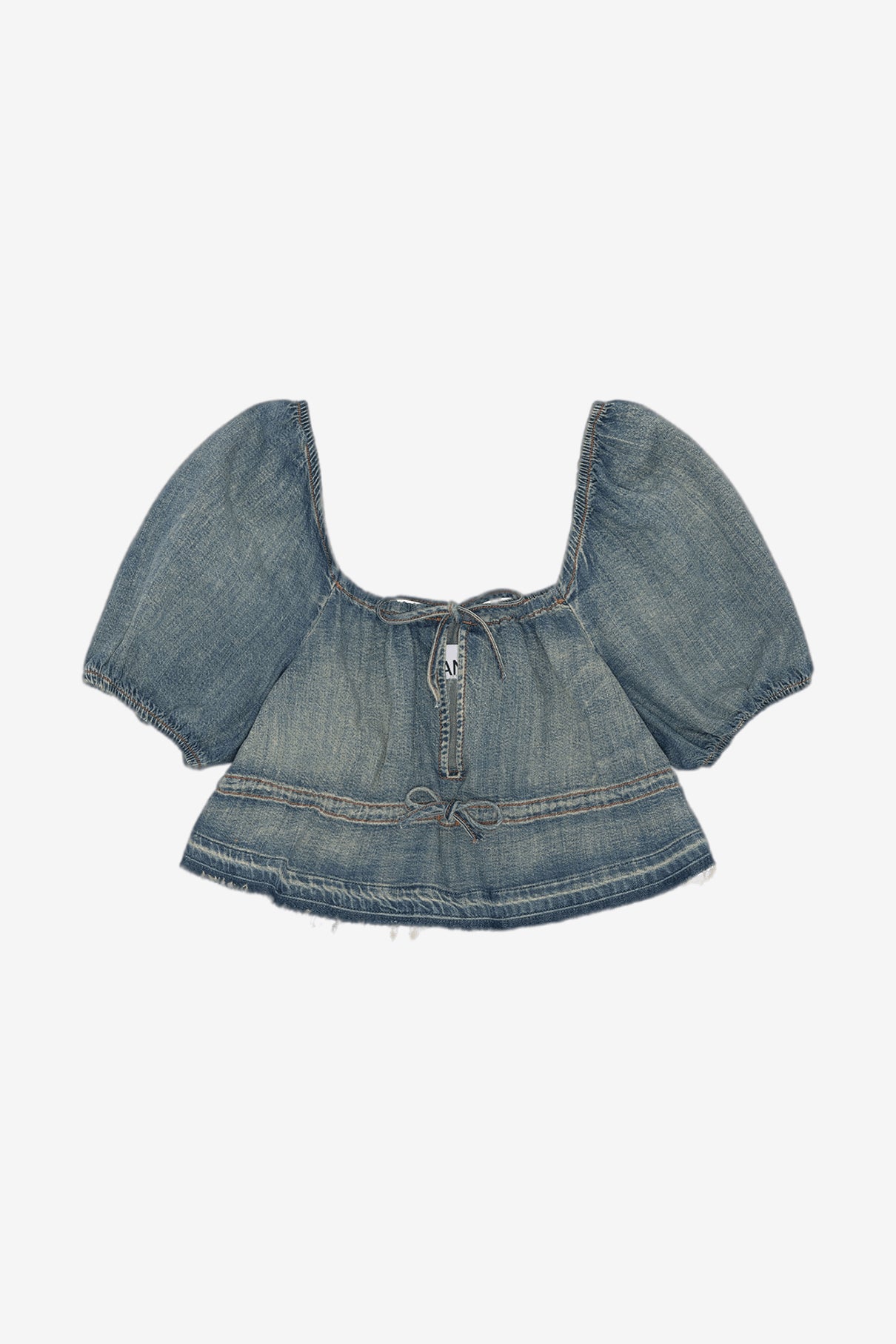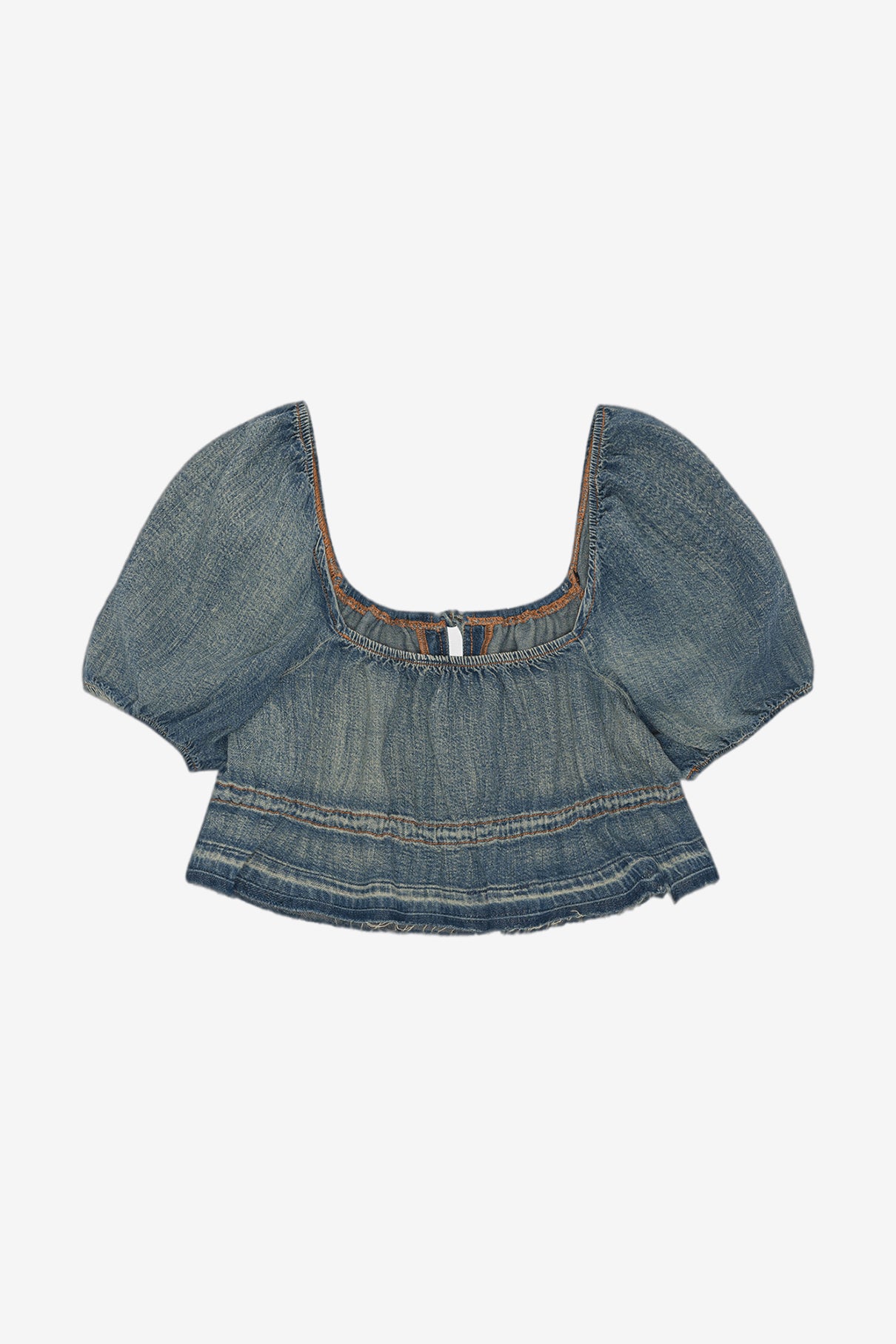 Tint Edge Denim Puff Sleeve Top - Tint Wash