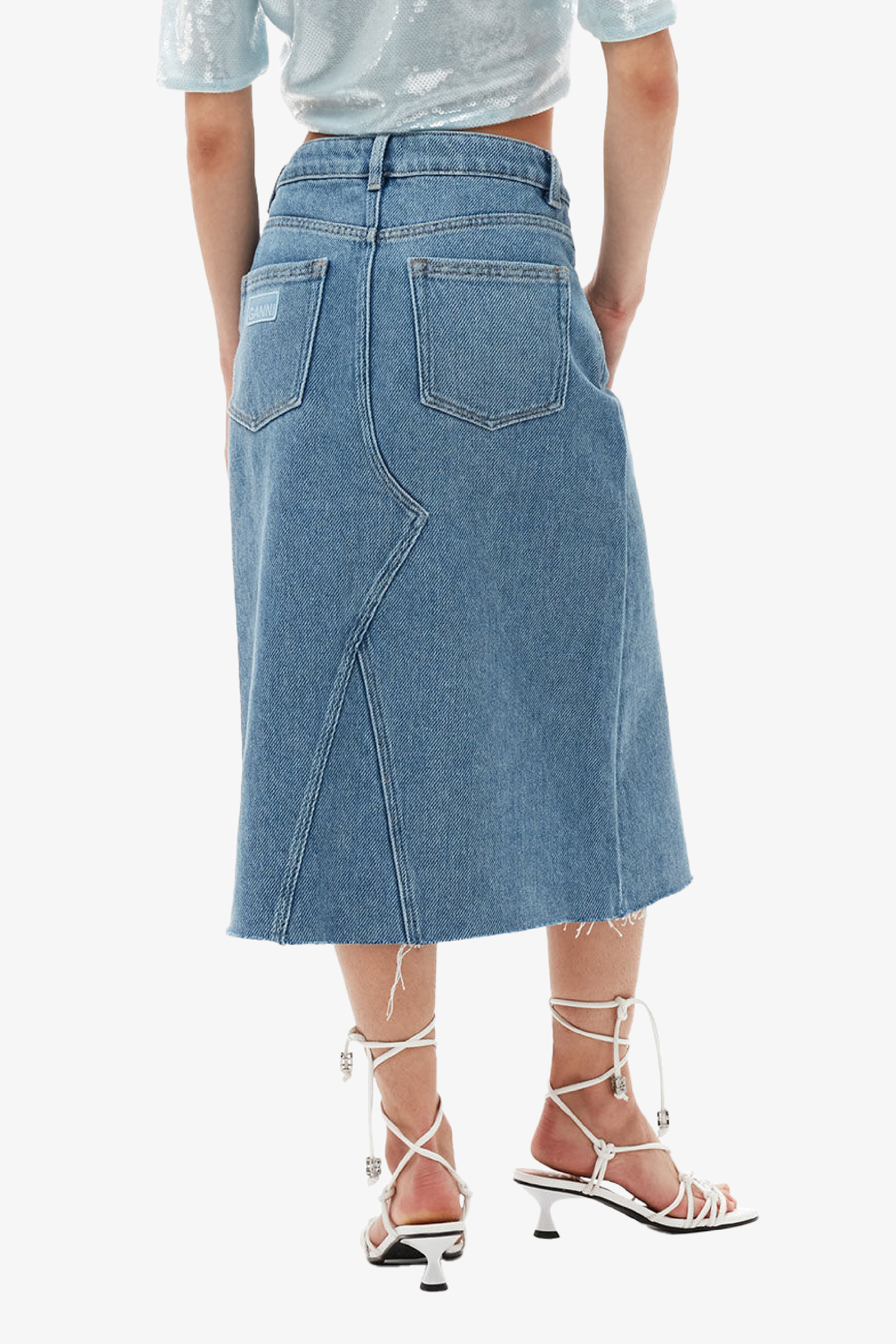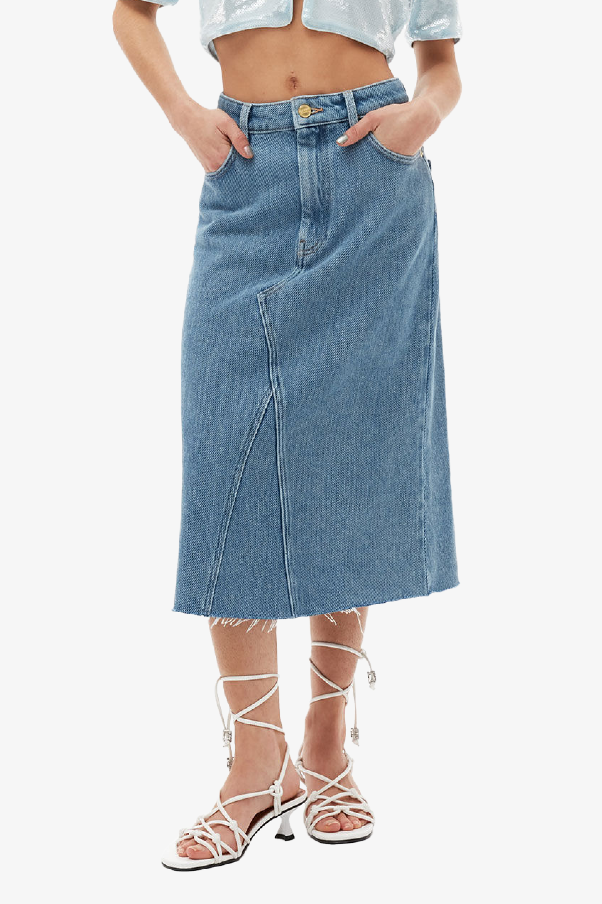 GANNI 的丹寧系列以丹麥風格的時尚感與現代率性著稱。這款重磅丹寧裙採用有機棉製成,經典直筒剪裁兼具舒適與俐落感,後口袋的 GANNI 標誌的設計細節,低調中展現品牌獨特個性。