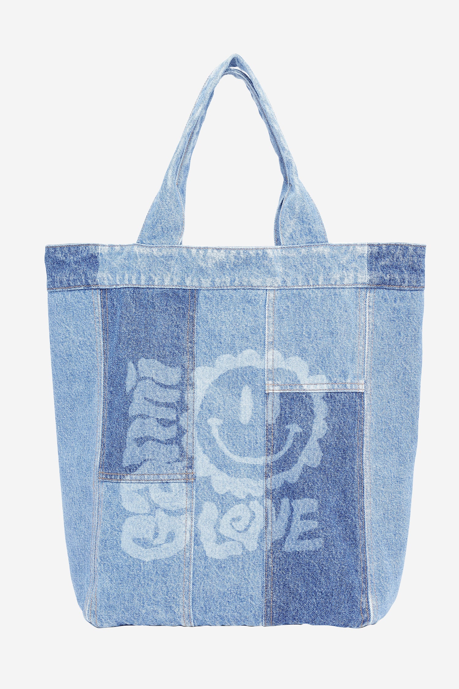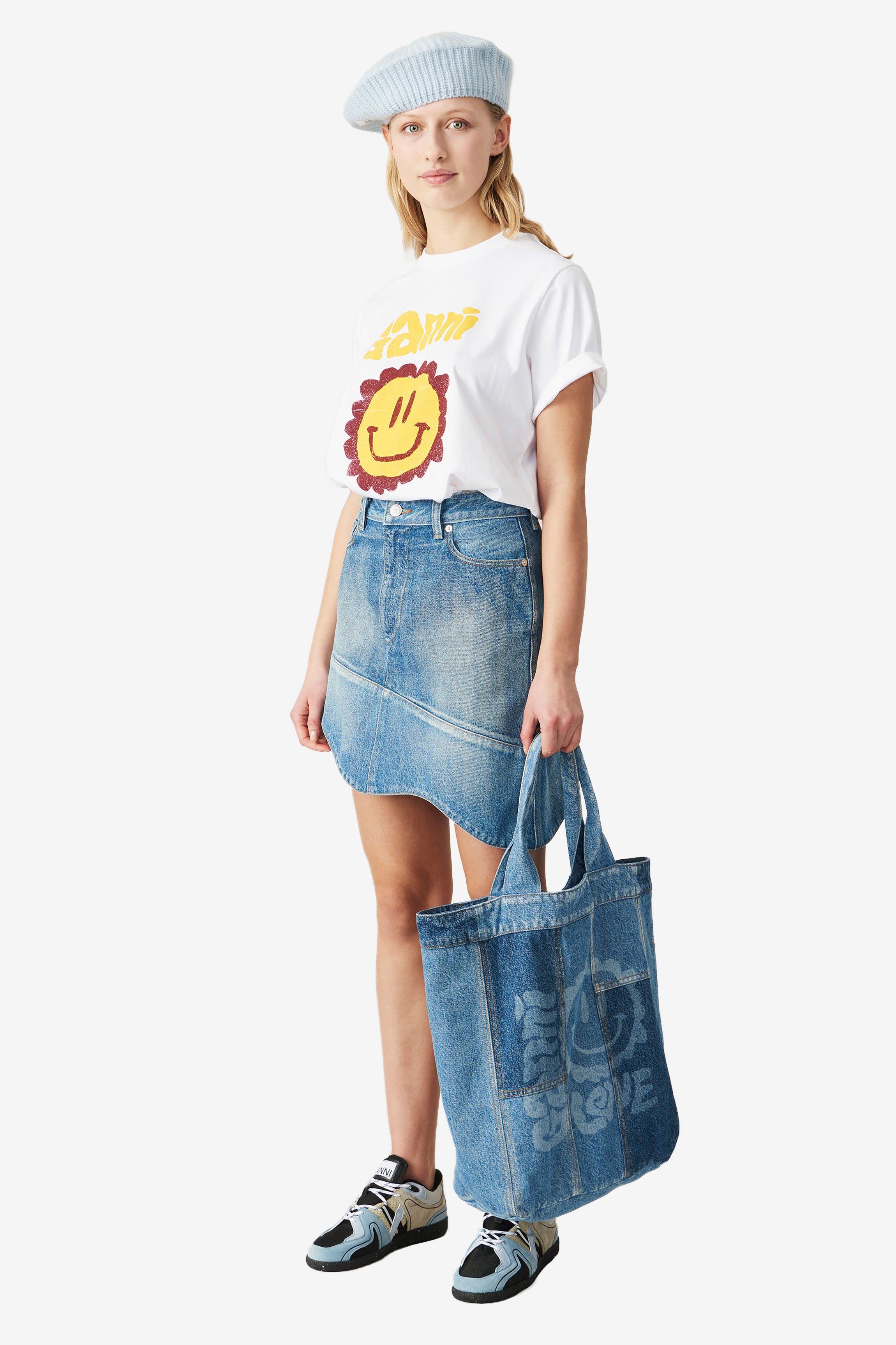 重磅牛仔拼色布料配上 GANNI 標誌性笑臉圖樣顯得俏皮童趣,