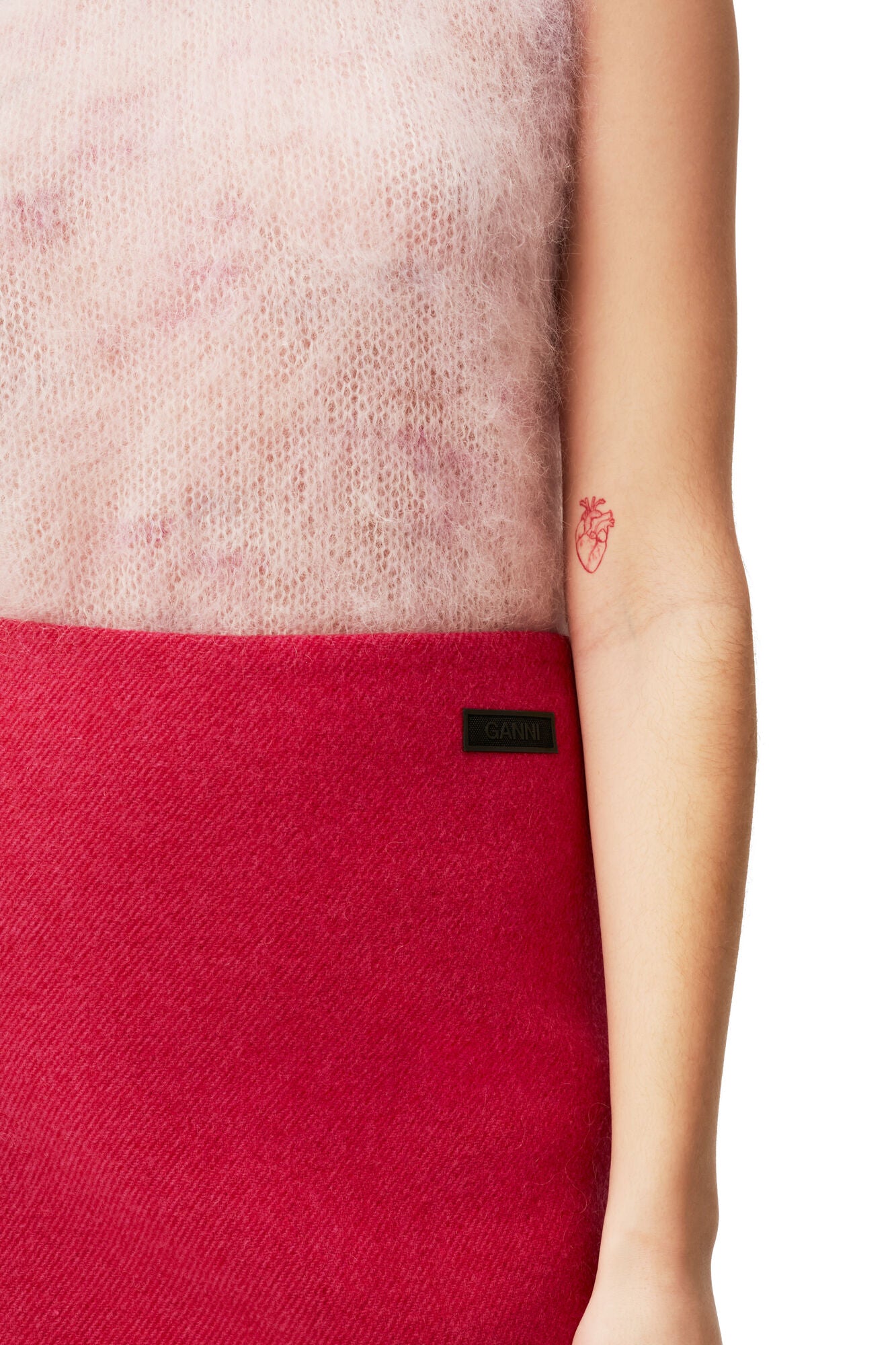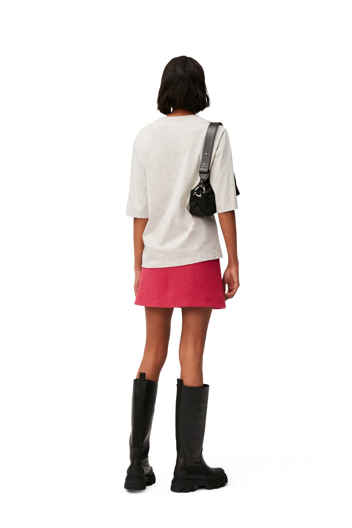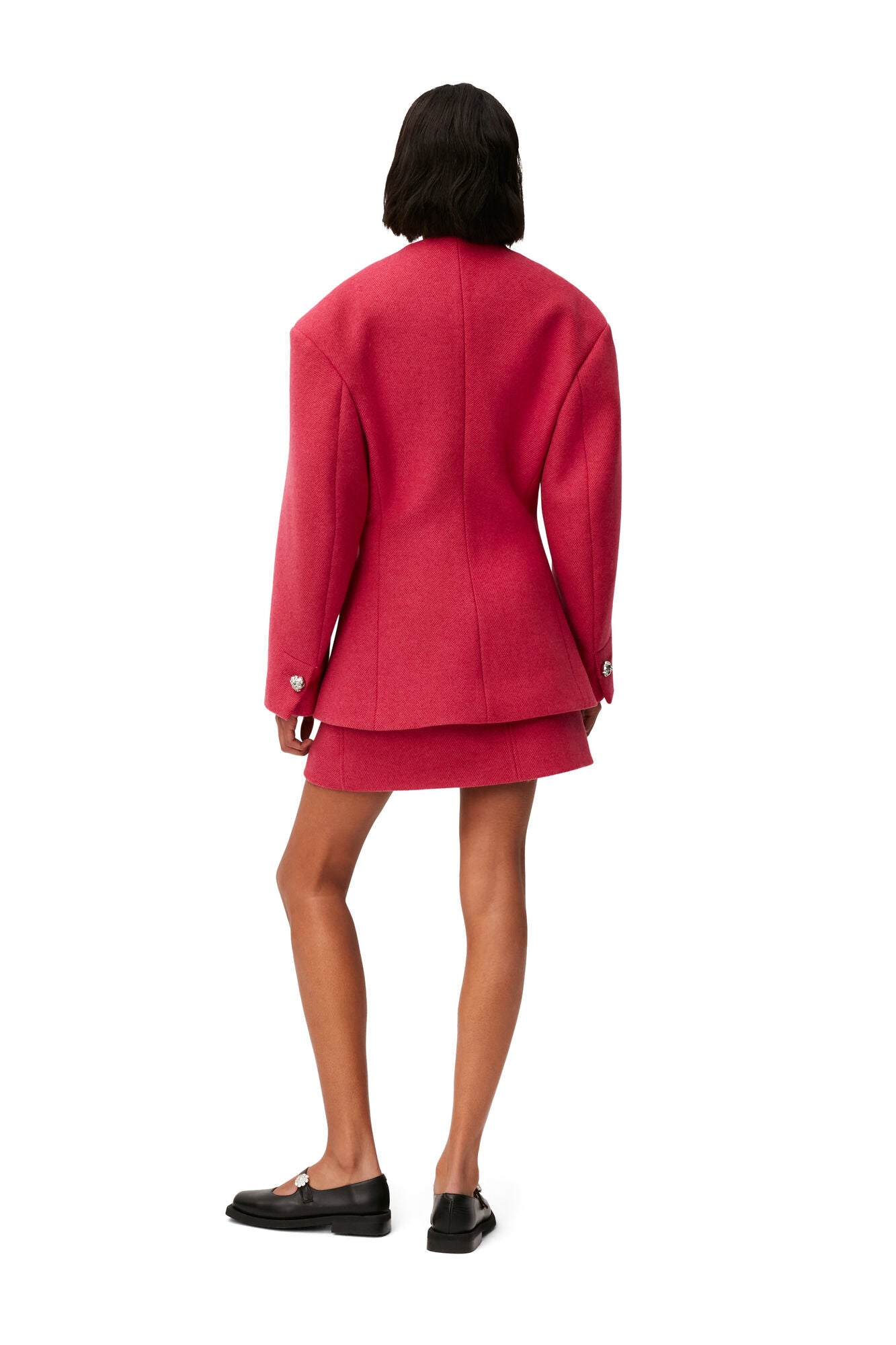 這款斜紋羊毛迷你短裙以羊毛混紡製成,版型挺拔有型且兼具彈性,能自然修飾腿部比例。鮮明的桃紅色在秋冬氛圍中格外搶眼,為沉穩季節注入亮點。搭配長靴或簡約 T 恤,都能展現俏麗而大膽的風格。
