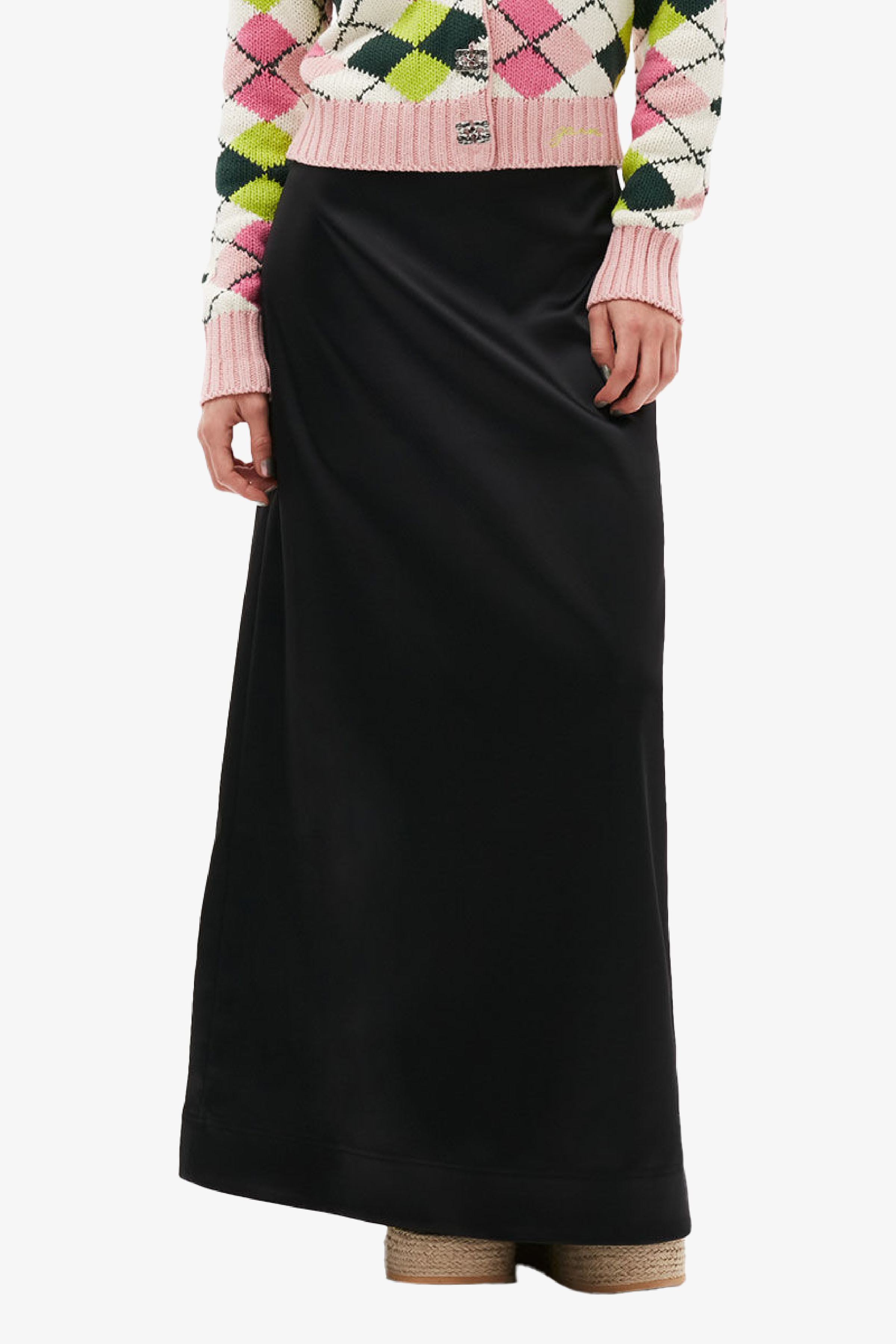 Double Satin Maxi Skirt - Black