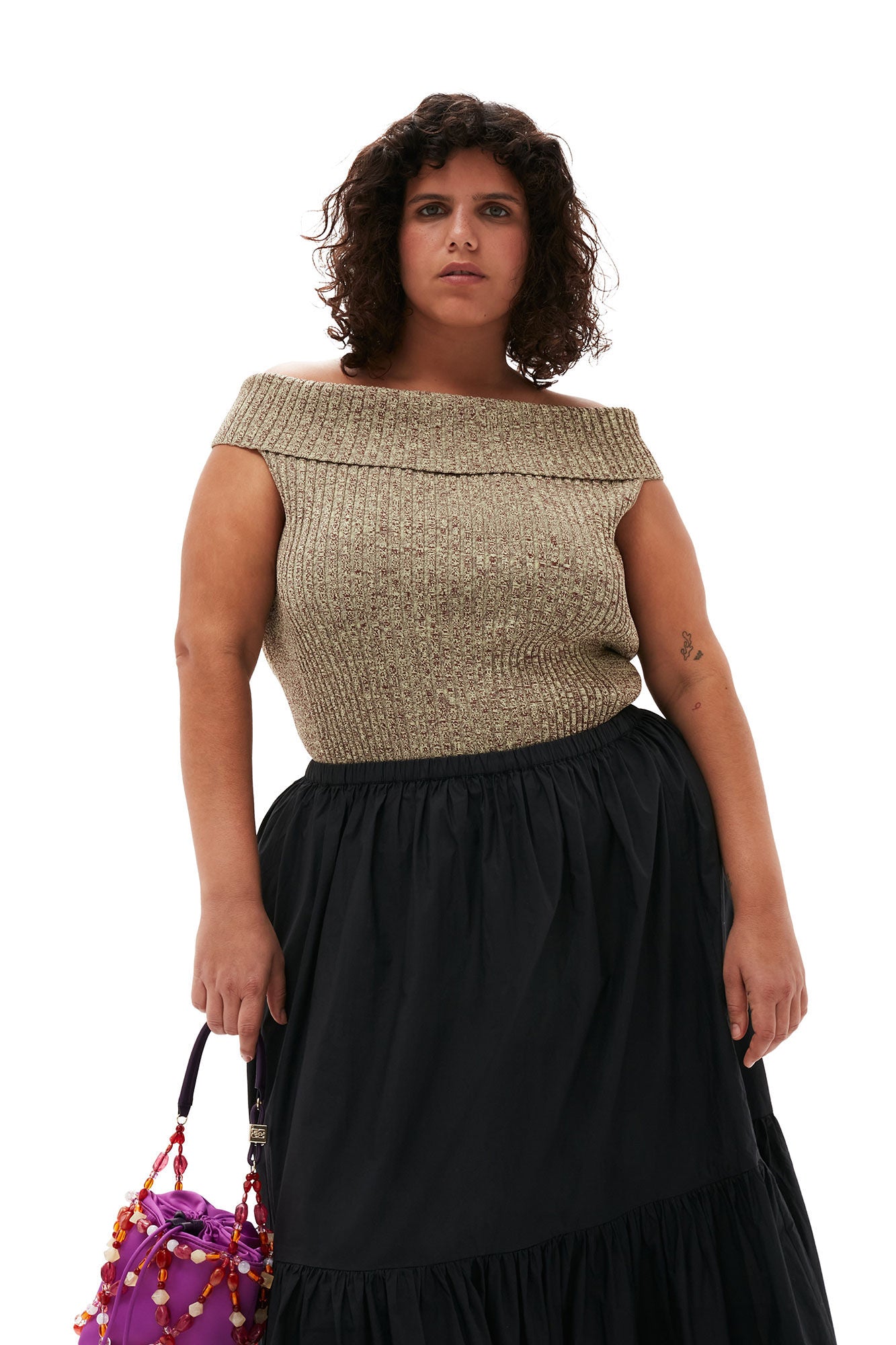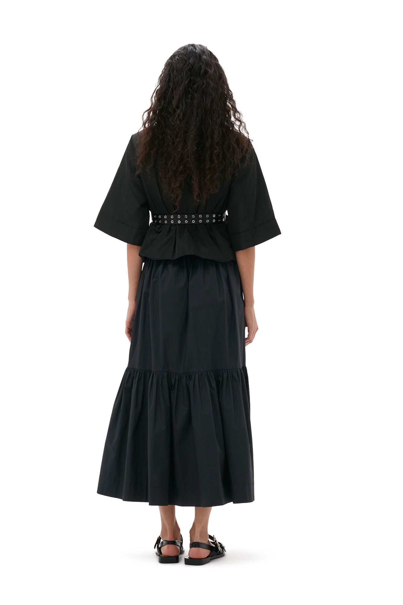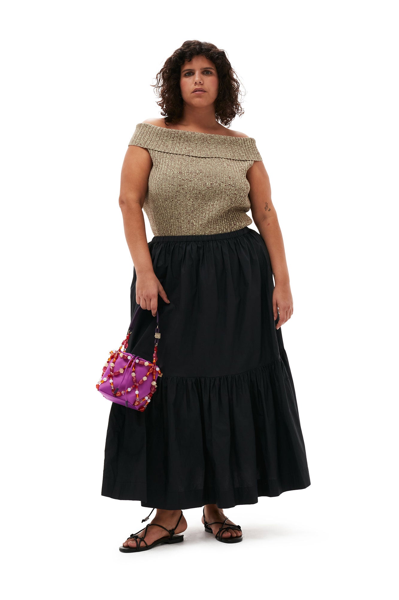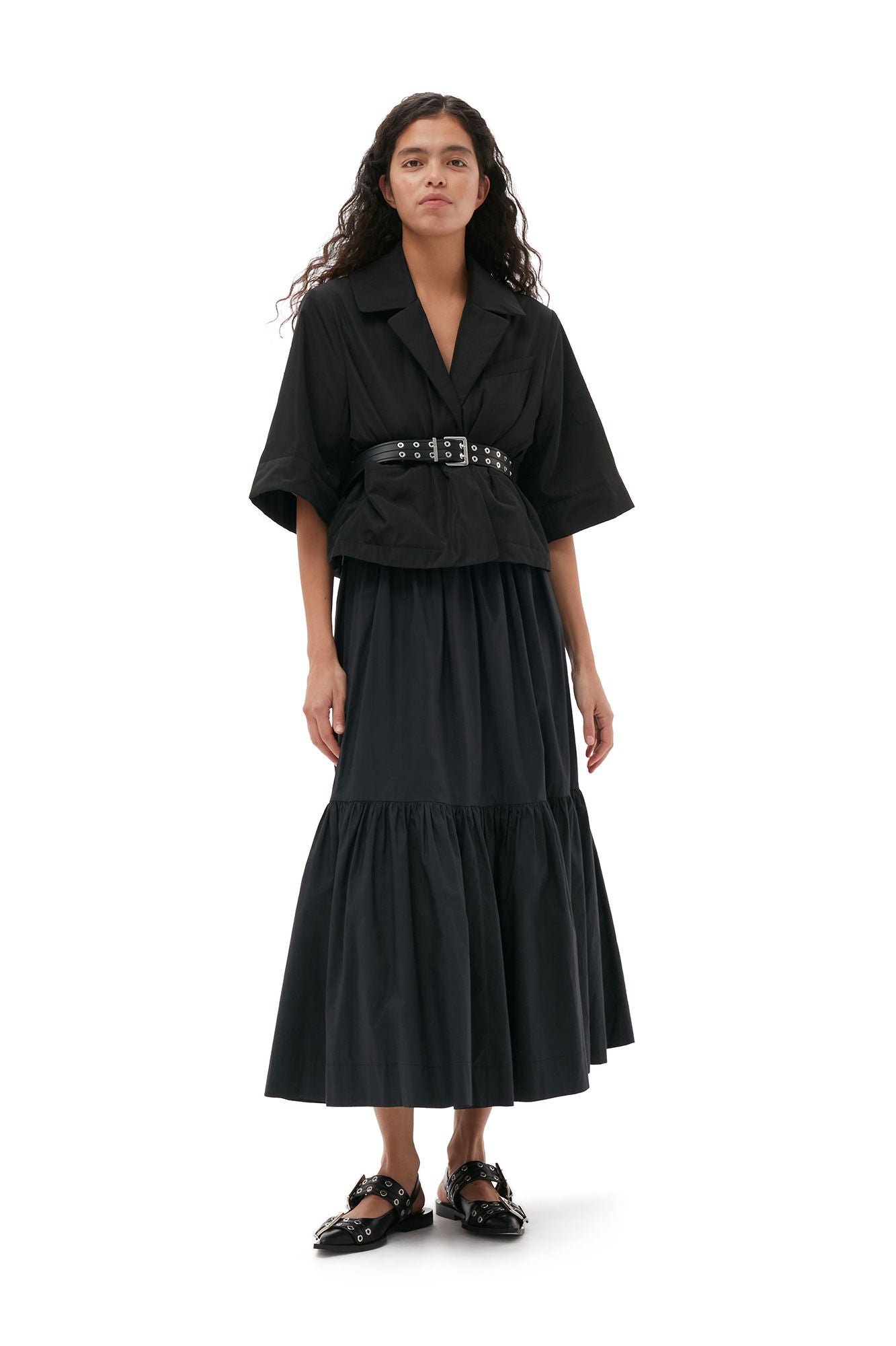 這款採用有機棉製作,柔軟且透氣。布料帶有自然垂墜感,以層層荷葉設計,使裙擺隨步伐擺動,營造輕盈飄逸的氛圍。