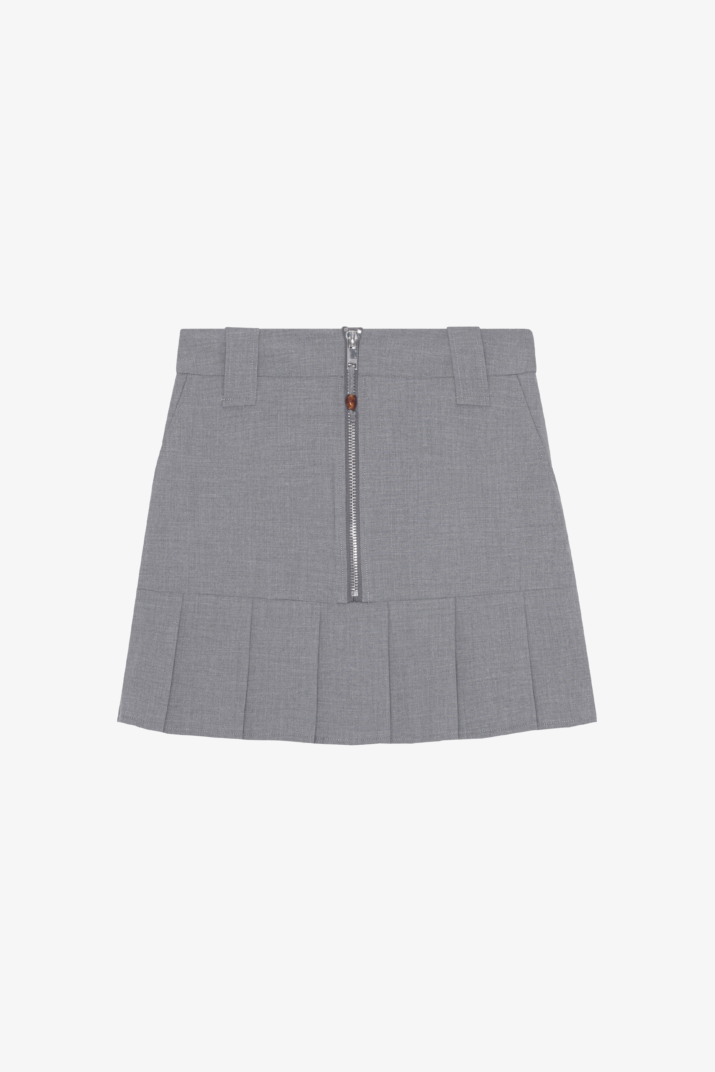 此款迷你裙跳脫一般設計,下擺採百褶剪裁,增添輕盈動感。前側拉鍊以珠飾點綴,腰圍設有腰帶環,可搭配皮帶或腰帶,輕鬆修飾腰線。兼具俏皮與率性,是日常或約會穿搭的理想單品。
