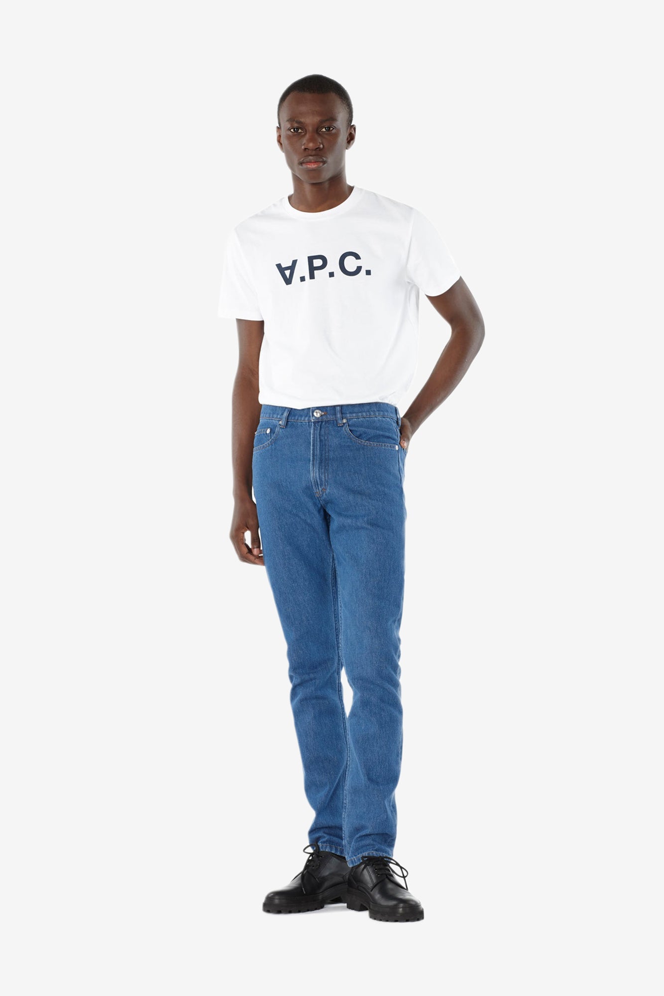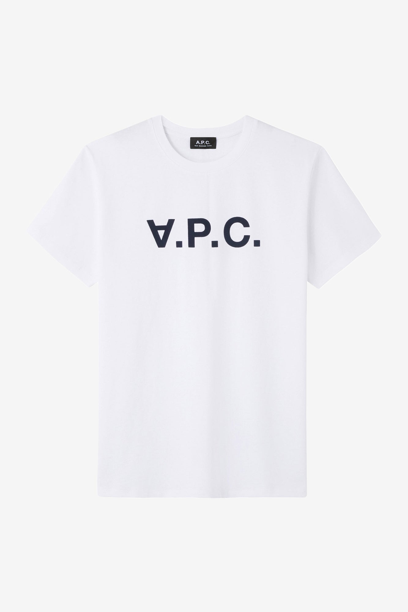A.P.C. 以高質感的日常必備單品在時尚界成為低調而搶手的品牌。這件T-Shirt胸前印有大型絨面logo,將 A.P.C. 延伸成 V.P.C.,點出特色。舒適的百分之百純棉面料,是炎熱天氣的著衣要素之一。V.P.C. logo T恤另有灰色款式。亦有 V.P.C. 字樣的衛衣款式。