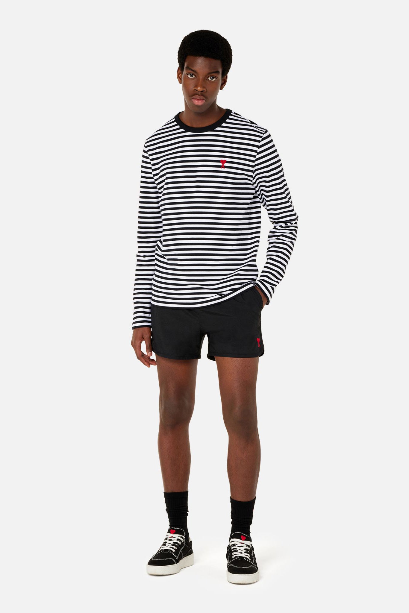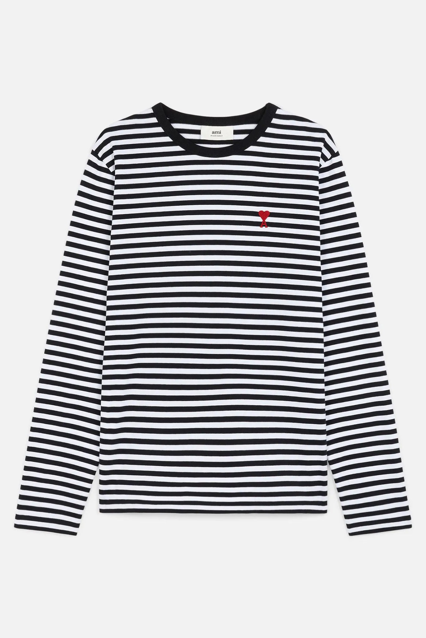 AMI 棉質長袖T-Shirt,胸前繡有紅色 Ami de Coeur 刺繡,