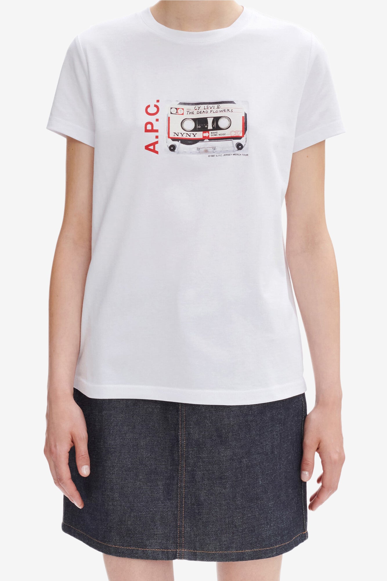 A.P.C. 以高質感的日常必備單品在時尚界成為低調而搶手的品牌。這件T-Shirt Thea在胸前印有卡式錄音帶圖樣,復古印花令人回想美好年代,帶點懷舊感。紅色A.P.C.字樣與錄音帶圖樣顏色相映,是件帶有特色卻不招搖的T-Shirt。男款亦有相同錄音帶圖樣的T-Shirt Natael。