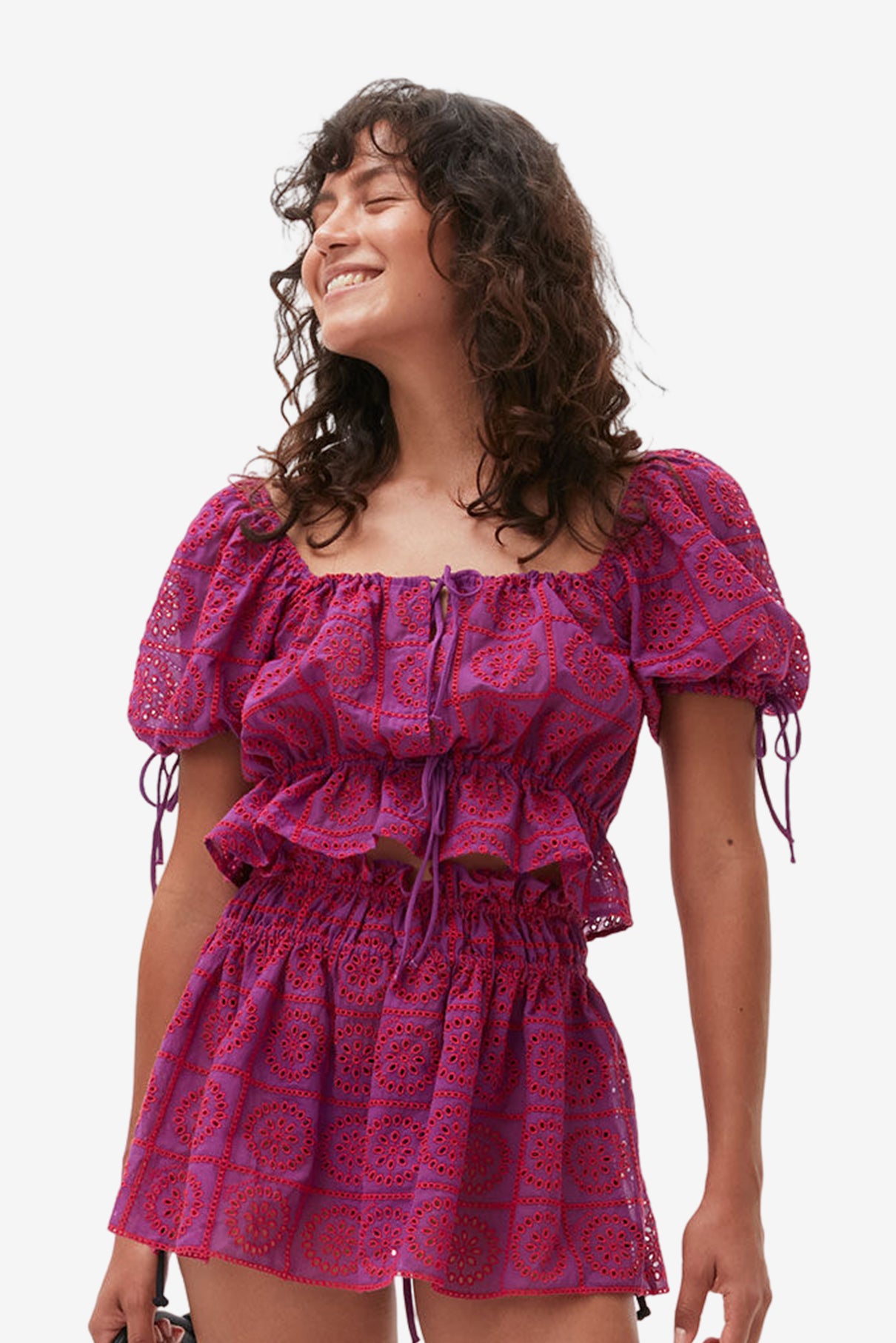Light Broderie Anglaise Cropped Top - Sparkling Grape