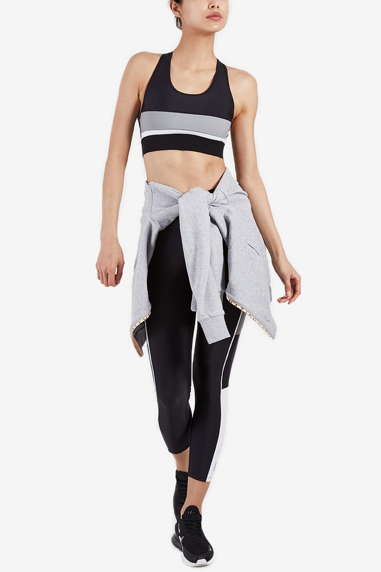 P.E NATION的 THE ALTITUDE CROP 運動內衣適合各種強度的活動,包括高強度的訓練、跑步或barre。 無胸墊的雙層裡布設計及高彈性的鬆緊式下圍提供良好的支撐與絕佳的舒適度。背部T字肩帶設計則賦予最大的活動空間。可搭配同色成套ELEMENT LEGGING 運動緊身褲。