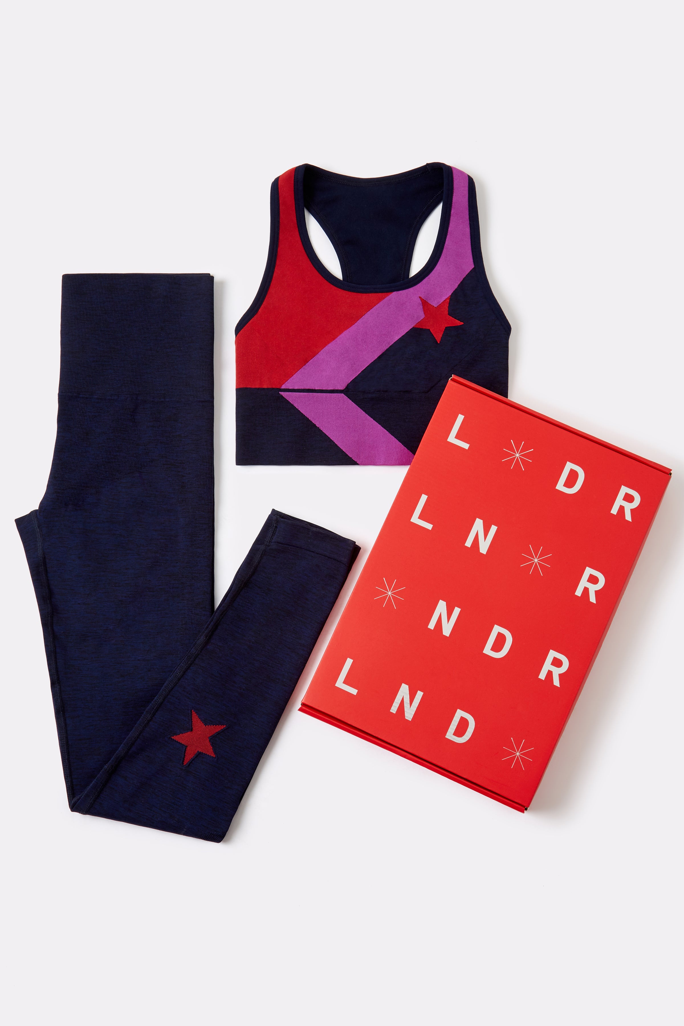 LNDR 限量版運動組包含 LNDR 出名的無接縫運動內衣及緊身褲款-運動內衣以圓形織機針織而成,創造平滑的觸感和無接縫的安心設計。使用的紗線抗菌防臭,並具強度吸濕排汗功能。下襬具高度壓縮力,提供額外的包覆和支撐。